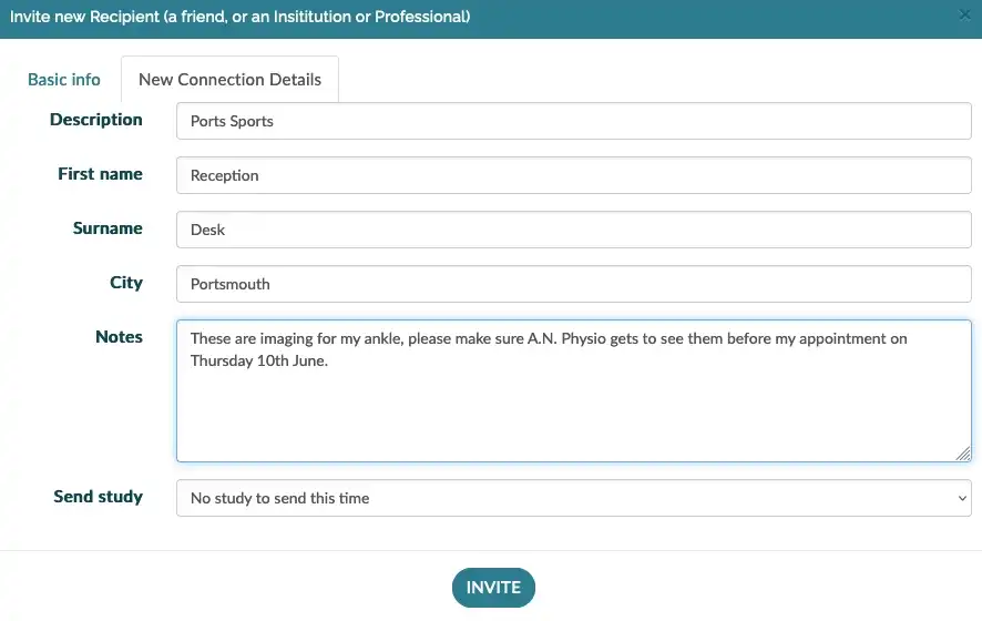 Use the 'Send study' option to send images along with the invite, allowing your connection to action the images the moment they accept the invite